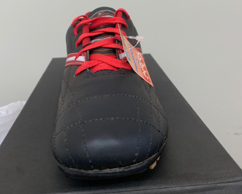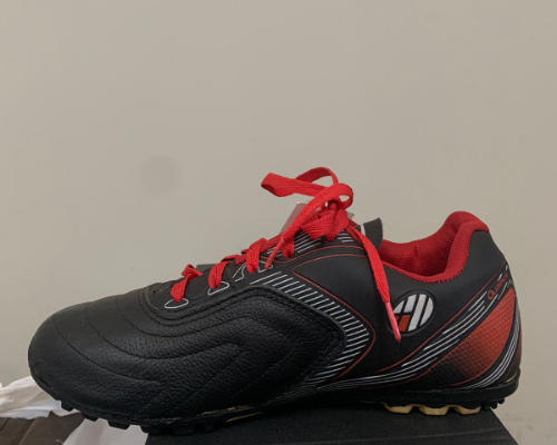 Solado: Solado em borracha antiderrapante costurado em 100% de sua área com cravos de desenho diferenciado que opera o melhor desempenho nos campos.