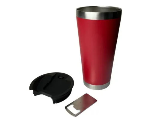 Copo Térmico 500ml Aço - Inox C/ Tampa E Abridor Beer - Cor Vermelho Escuro