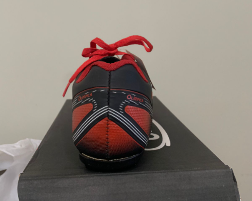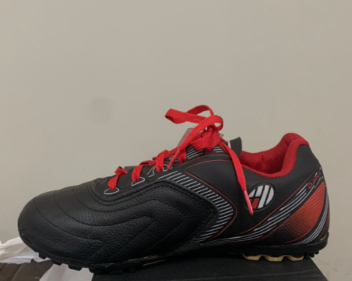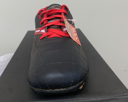 Solado: Solado em borracha antiderrapante costurado em 100% de sua área com cravos de desenho diferenciado que opera o melhor desempenho nos campos.