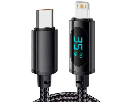 O Cabo Carregador Turbo 35W Led USB-C para Lightning da Eletromex é a solução ideal para quem busca eficiência e rapidez no carregamento de dispositivos Apple. Com um conector de entrada USB-C e um conector de saída Lightning, este cabo é compatível com todos os modelos de iPhone, do 5 ao 14, incluindo as versões Pro e Pro Max.