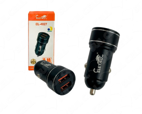 Carregador Veicular Com 2 Saídas USB 5.1A – Cinza EL-4027 - Electro