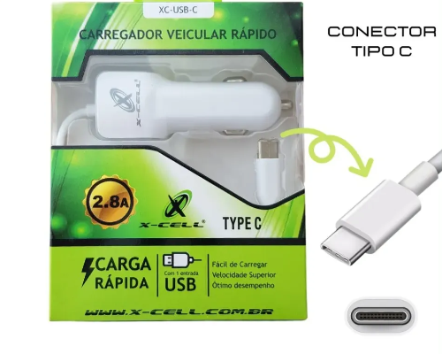 TIPO DE PRODUTO: CARREGADOR VEICULAR RAPIDO COM SAIDA USB 2,5A E CABO V8 X-CELL