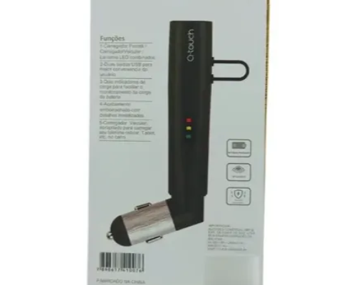 Carregador Veicular 3 em 1 Q-Touch- Powerbank/Lanterna com 2 entradas USB