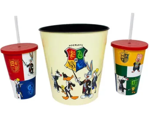 Kit Balde Pipoca E Almofada Zona Criativa Harry Potter looney Tunes WB Original