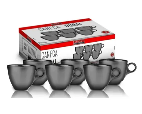 Estilo e qualidade fazem parte do Jogo de canecas Dubai composto por 6 unidades. Com capacidade para 85ml na cor cinza, a peça se destaca pela elegância da sua textura clean.