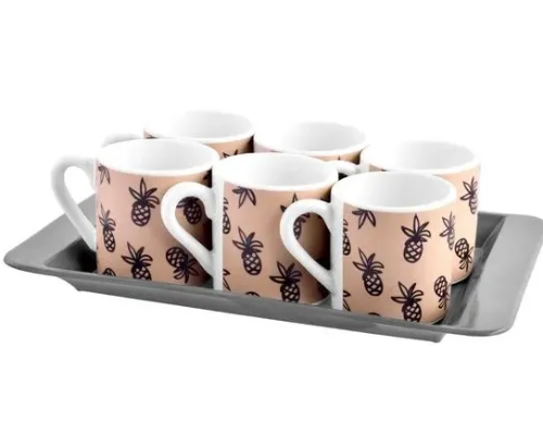 Jogo 6 Xícaras Para Café de Cerâmica com Bandeja - Este Conjunto Xícara possui detalhes que enriquecem a decoração da sua mesa ao servir no seu dia a dia ou para os seus convidados.