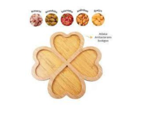 Bandeja Petisqueira De Madeira Servir E Decorar Servir E Decorar Com Mais Praticidade, A Petisqueira É Uma Tendência Em Tons Amadeirados, Com Formato De Trevo / Coração Fornece 4 Divisórias Totalizando 26 Cm, Tornando-a Ideal Dar Aquele Toque Especial Na Sua Mesa Posta Para Os Amigos E Encontros Familiares. Composta De Madeira Mdf, A Bandeja Possui Design Leve E Moderno, Com Apenas 250 Gramas Aproximadamente. Não Ocupa Muito Espaço E Ainda Dá Um Toque De Beleza Na Decoração Da Sua Casa. Cuidados Com O Seu Produto - Limpar Com Pano Seco Ou Levemente Úmido. Não Resistente A Químicos E Abrasivos. Dimensões: 26x26x1,3cm