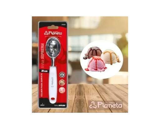 A "colher para sorvete" da Planeta é com certeza o utensílio perfeito para o seu dia a dia. a colher de sorvete é de aço inox, possui um design moderno e um cabo que facilita o manuseio é um produto indispensável.