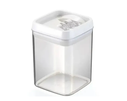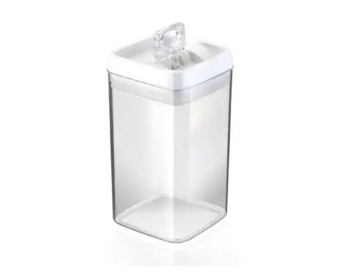 Pote Hermético Acrílico Quadrado 800 ml Pote Hermético Quadrado - Organizador de 800 ml Bonito, prático e de fácil utilização. Ideal para armazenamento de cereais, bolachas, grãos, etc. Possui sistema de fechamento hermético que preserva seus alimentos por muito mais tempo. Produzido em plástico acrílico transparente, facilitando a visualização do seu conteúdo interno. São empilháveis aproveitando melhor o espaço no seu armário. Sua tampa é desmontável, facilitando assim a sua limpeza Pote 800 ml (comprimento 9 cm x largura 9 cm x altura 17 cm) Cor: Pote: transparente Tampa: branca Material: Acrílico Plástico Borracha