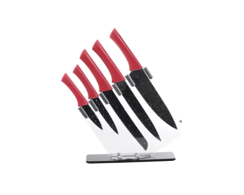 Conjunto De Facas C/ Suporte Chef Vermelho Inox/Acrílico 6pç - Wincy