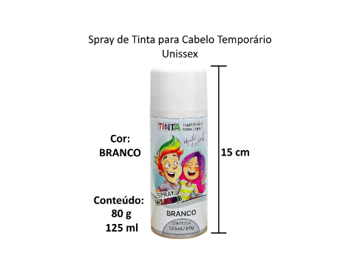 Lata Spray de Tinta para Cabelo Colorido Temporário Lavável Branca