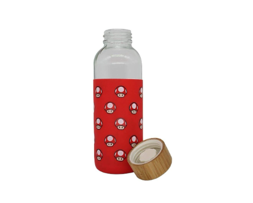 Precisando de uma forcinha extra para salvar a princesa Peach? Com a Garrafa eco Mushroom Super Mario 450ml vermelha | NIntendo seus problemas acabaram! Não importa o jogo, ela te acompanha em todas as suas aventuras e te mantém sempre hidratado! A garrafa é importada, o corpo é feito em vidro, a case em silicone (capa que contém a estampa), o que proporciona uma excelente pegada na hora de segurar o produto a tampa é feita em Bambu com silicone no topo para evitar vazamentos. As medidas são: Altura 19cm, Comprimento 6cm, Largura 6cm, Peso 255gr e possui 450ml de capacidade.