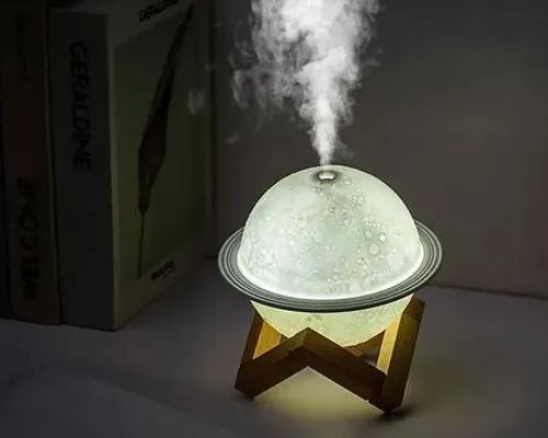 O umidificador nos faz muito bem ajudando deixar o ar mais úmido. O umidificador Saturno 3D deixa o seu ambiente ainda mais bonito com a sua função umidificador e luminária. Ele pode ser utilizado com essência somente a base de ÁGUA.