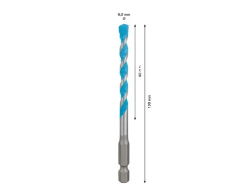 A broca EXPERT HEX-9 MultiConstruction possui haste hexagonal de 1/4 de polegada e pode ser utilizada com chaves de impacto, parafusadeiras e furadeiras (com ou sem impacto), com ou sem cabo que possuam encaixe ou mandril compatível com 1/4 de polegada. É até 5 vezes mais precisa do que uma broca CYL-3. A broca EXPERT HEX-9 MultiConstruction oferece perfuração estável em quase todos os tipos de materiais, por isso é denominada como uma broca multimaterial. A combinação de carbeto de tungstênio Bosch com arestas de corte afiadas com diamante, tornam a broca resistente ao desgaste. Além disso, sua ponta centradora permite uma perfuração estável do início ao fim.
