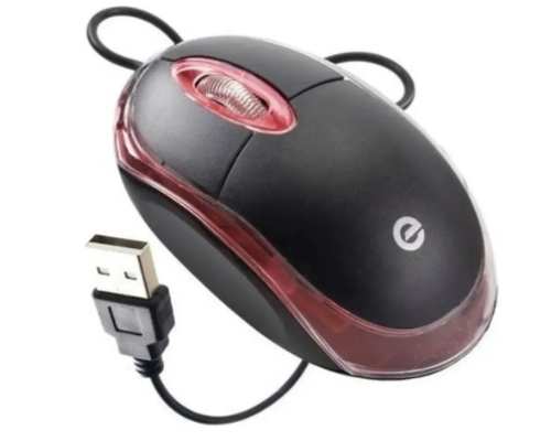 Mouse clássico óptico USB, scroll suave, design ergonômico, ideal para uso diário, com bordas transparentes que, em conjunto com led vermelho, dão um ar moderno ao produto.