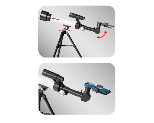 O Telescópio DM Ciência é perfeito para despertar a curiosidade e espírito explorador. Com ampliação de 30x e 60x, cada sessão de observação é uma nova aventura espacial, repleta de descobertas fascinantes. O Telescópio DM Ciência vem com todos os acessórios necessários para uma exploração completa, incluindo suporte para smartphone, lentes oculares, luneta, protetor ocular e tripé. Simples de montar e ajustar, leve o telescópio para o campo, o quintal ou até mesmo uma viagem para explorar novos horizontes!